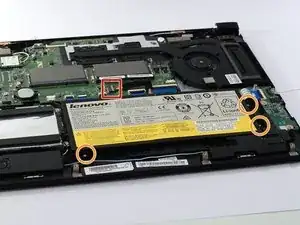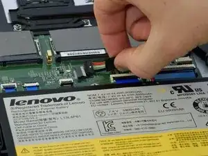 Найдите разъем аккумулятора и три винта M2 x 4.0 мм, удерживающих аккумулятор на месте.
