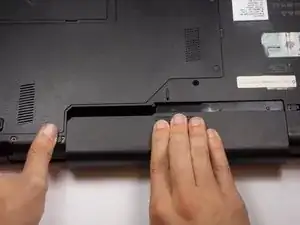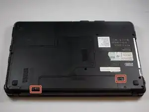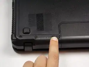 Найдите переключатели в нижней части компьютера с обеих сторон батареи, как показано на изображении.