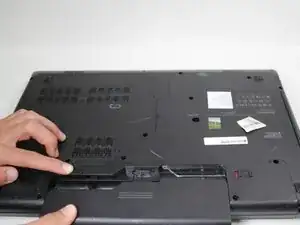 Переместите переключатель блокировки аккумулятора на нижней панели ноутбука в положение «разблокировано».