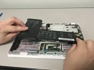 Снимите две части скотча, которые фиксируют аккумулятор.