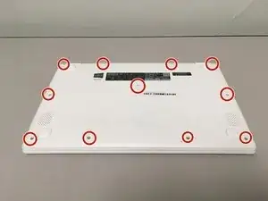 Открутите одиннадцать винтов Philips #0 длиной 4 мм на нижней части устройства.