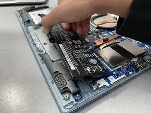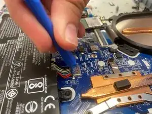 Отключите кабель аккумулятора от разъема материнской платы, аккуратно потянув его к аккумулятору.