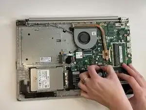 Начните с удаления задней панели ноутбука, чтобы получить доступ к аккумулятору.