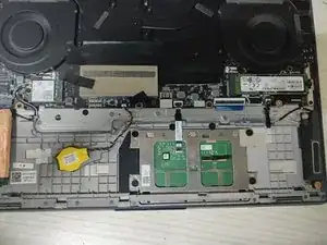 Переверните ноутбук, чтобы убедиться, что тачпад правильно выровнен. Если он выпирает, как будто новый аккумулятор снова вздулся, попробуйте снять заднюю крышку и установить её заново.