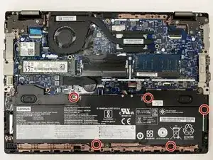 Удалите пять винтов с крестовой головкой #00 длиной 5 мм, которые крепят аккумулятор.