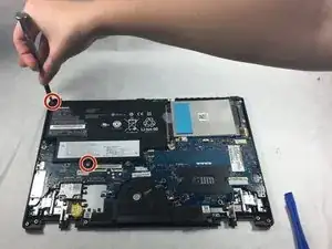 Удалите два винта из аккумулятора с помощью отвертки Phillips #1.