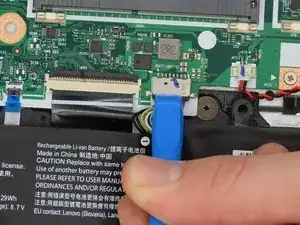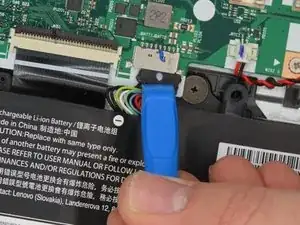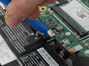 Чтобы начать удаление аккумулятора, отключите шлейф, соединяющий аккумулятор с компьютером.
