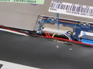 Отключите аккумулятор от материнской платы, потянув разъем питания в направлении к аккумулятору.