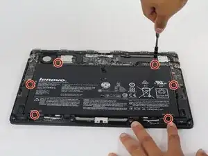 Снимите шесть винтов 3.5 мм вокруг аккумулятора с помощью отвертки Phillips 00.