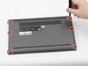 Используйте отвертку Torx T4, чтобы удалить шесть винтов размером 4,60 мм, крепящих нижнюю панель.