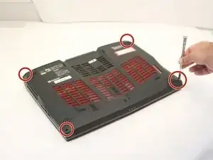 Удалите четыре винта с крышки задней части с помощью отвертки Phillips #0. Винты длиной 1.3 см.