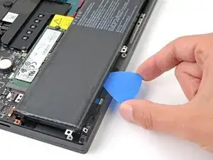 Оставьте лопатку между аккумулятором и рамой, чтобы предотвратить повторное приклеивание аккумулятора.