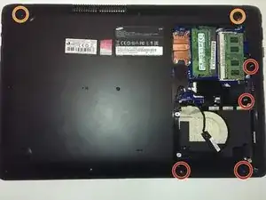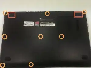 Удалите семь винтов 6,5 мм на внешней стороне компьютера.