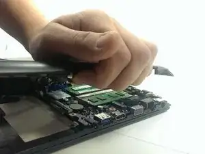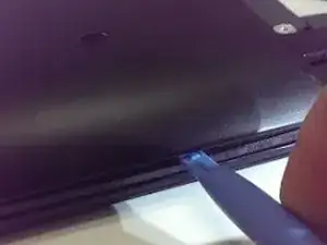 С помощью пластикового инструмента для вскрытия отщелкните пластиковую панель от корпуса компьютера.