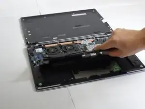Поднимите крышку, чтобы открыть внутреннюю часть ноутбука.