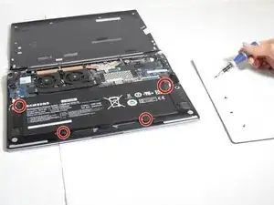 Чтобы заменить аккумулятор, подготовьте крестовую отвёртку. Убедитесь, что можете отслеживать все снятые винты и знать, куда каждый из них должен быть установлен (магнитная матрица для хранения деталей будет полезна). Если аккумулятор повреждён и требует замены, покупайте аккумулятор у производителя ноутбука (возможно приобрести онлайн или в магазине ритейлера Samsung). Убедитесь, что старый аккумулятор утилизирован должным образом в соответствии с правилами вашего города.