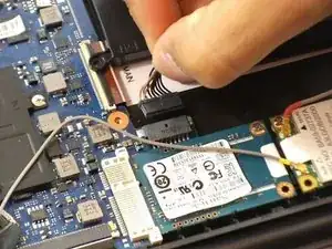 Поднимите аккумулятор вверх и в сторону от ноутбука, чтобы удалить его.