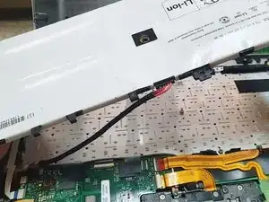 Осторожно вытяните плоский кабель, затем полностью извлеките литий-ионную батарею.