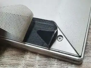 Оторвите пластиковую пленку (серебристую) и двустороннюю ленту (черную). Главное — обнажить винты, скрытые под ними.