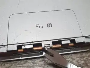 Снимите «крышку NFC» с помощью лопатки аккуратно. Не ломайте фиксатор.