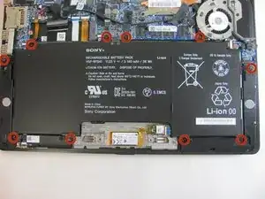 Найдите и удалите десять винтов Philips #0 размера 1 мм, которые крепят аккумулятор на месте.