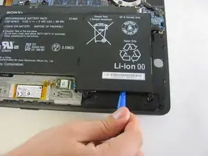Удалите аккумулятор с помощью пластиковой открывашки, поместив инструмент между аккумулятором и компьютером и аккуратно поднимая его.