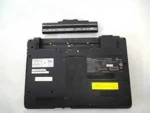Найдите защёлку. Сдвиньте защёлку влево, чтобы вынуть аккумулятор из ноутбука.