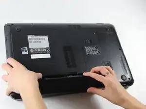 Положите ноутбук вниз крышкой на ровную поверхность.
