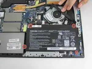 Удалите четыре винта диаметром 0,5 мм, которые крепят батарею, с помощью отвертки Phillips #1.