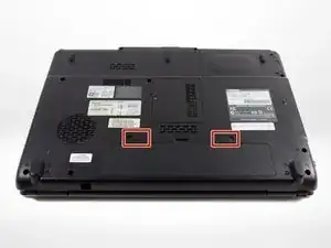 Левый и правый переключатели, обведенные красным, расположены внизу на нижней стороне компьютера.