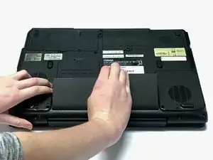 Поднимите аккумулятор, чтобы полностью удалить его из ноутбука.