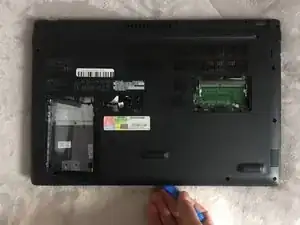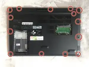 Удалите четырнадцать винтов Phillips #0 2,5 мм с задней панели ноутбука.