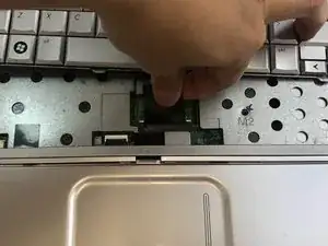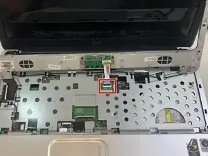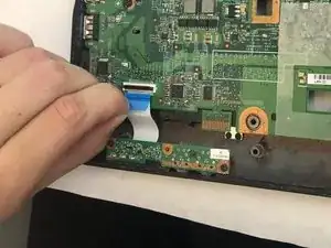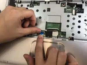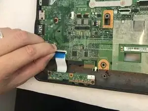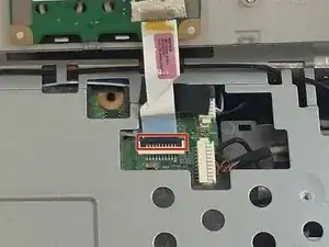 Извлеките кабель мыши и тачпада, подняв чёрную защёлку и аккуратно вытянув кабель.