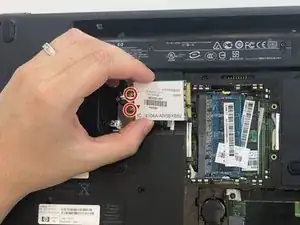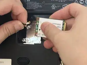 Отвинтите два винта 3,0 мм крестовой отвёрткой Phillips #0, фиксирующие модуль Wi‑Fi.