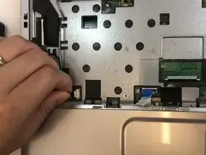 Отсоедините белый провод экрана в нижнем левом углу, аккуратно вытянув его.