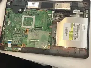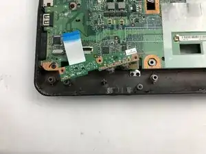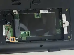 Вытяните чёрный провод в верхнем правом углу ноутбука.
