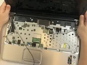 Осторожно поднимите и отсоедините сборку дисплея от основания ноутбука.