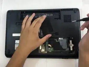 Отвинтите два винта 4,0 мм крестовой отвёрткой Phillips #0 в отсеке жёсткого диска.