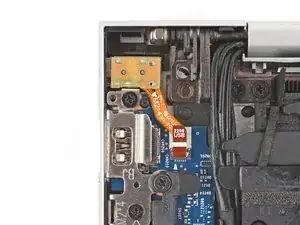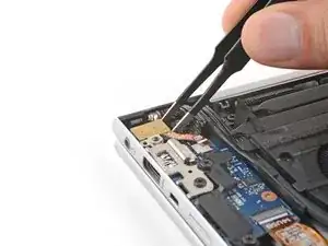 Используйте крестовую отвертку, чтобы вывернуть винт длиной 4,6 мм, крепящий аудиоразъём.