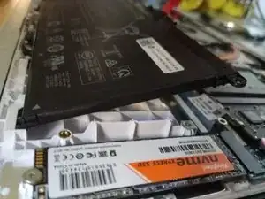 Тяните батарею к верхней части компьютера, чтобы освободить её.