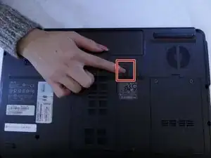 Переверните ноутбук так, чтобы батарея была обращена вверх, а петли смотрели от вас.