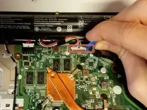 Потяните разъем батареи в сторону батареи, чтобы отсоединить его от разъема на материнской плате.