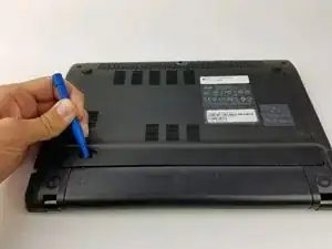 На нижней стороне ноутбука, ближе к задней части, найдите рычаг блокировки батареи. Сдвиньте рычаг и выньте батарею.