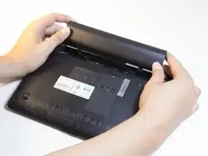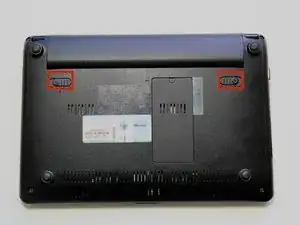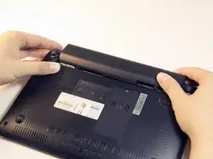 Найдите два защелки на задней части ноутбука.