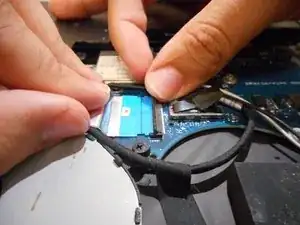 С помощью пальцев ухватитесь за обе стороны жгута проводов и поднимите его вверх.