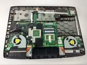 Не пытайтесь удалить корпус пока. Он все еще соединён с ноутбуком с помощью четырёх кабелей.