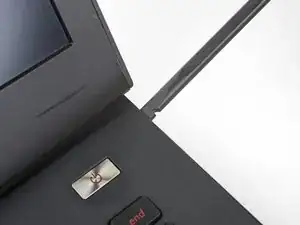 Вставьте инструмент для открывания в зазор между оптическим приводом и ноутбуком.