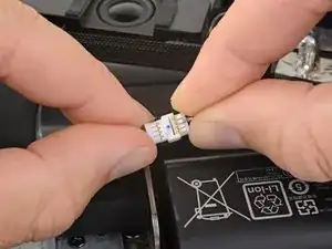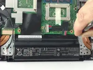 Отключите разъем, соединяющий аккумулятор с материнской платой.