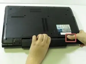 Сдвиньте два язычка на нижней стороне ноутбука к краям устройства.