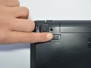 Аккуратно выдвиньте батарею, одновременно удерживая левый переключатель разблокировки.